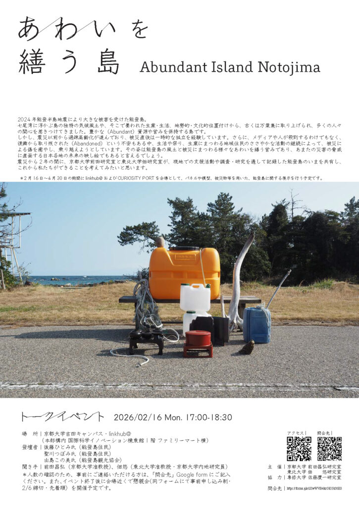 震災から2年の間に、京都大学前田研究室と東北大学佃研究室が、現地での支援活動や調査・研究を通して記録した能登島のいまを共有し、これから私たちができることを考えてみたいと思います。